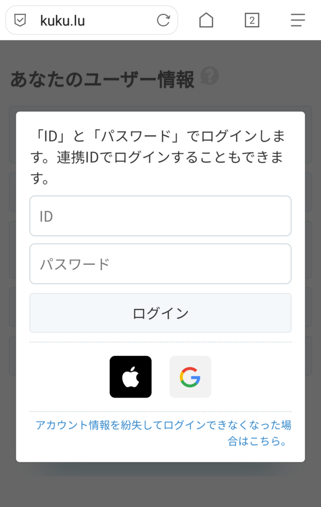 次回からは他のアカウントにログインからポチポチ入力したらまたできます。