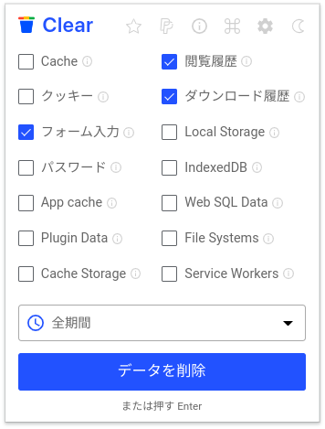履歴、キャッシュ、Cookie をクリアする – Chrome ウェブストア