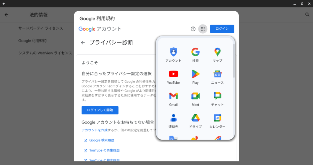 - ってことで、右上にある「ログイン」の横にある「Google アプリ(9つの点のやつ)」をクリック