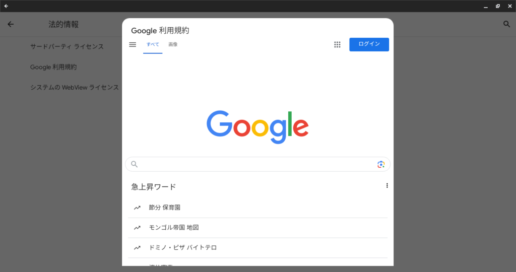 - 「Google 利用規約」をクリック