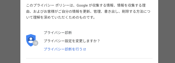- 「プライバシーポリシー」をクリックして、すぐにスクロールして、青色のリンクの「プライバシー診断を行う」を素早くクリックします