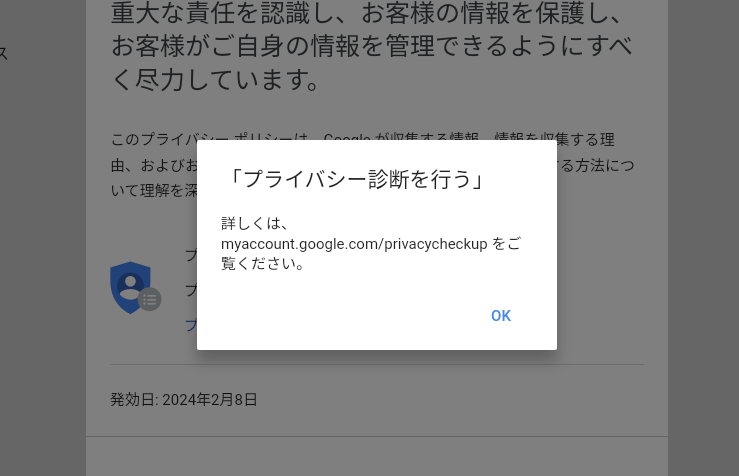 失敗: 「詳しくは、myaccount.google.com/privacycheckup をご