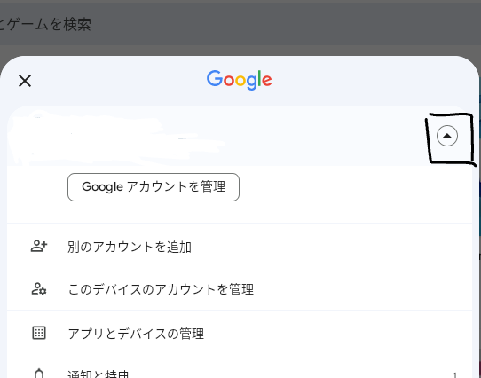 - アカウントの横にある「🔽」みたいなのをクリック