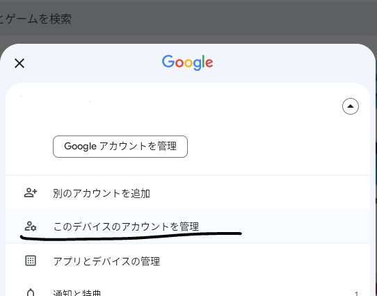 - 「このデバイスのアカウントを管理」をクリック