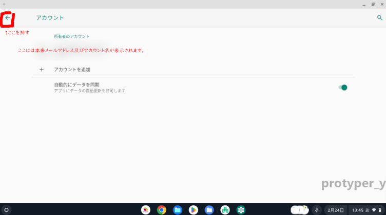 - 「アカウント」の左にある矢印「←」をクリック