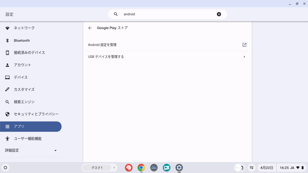 • 「アプリ」の項目を探しタップして移動し、chromebookに入れたいアプリを選択して入れます