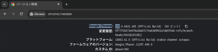 chrome://version でバージョンを確認してください