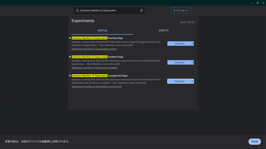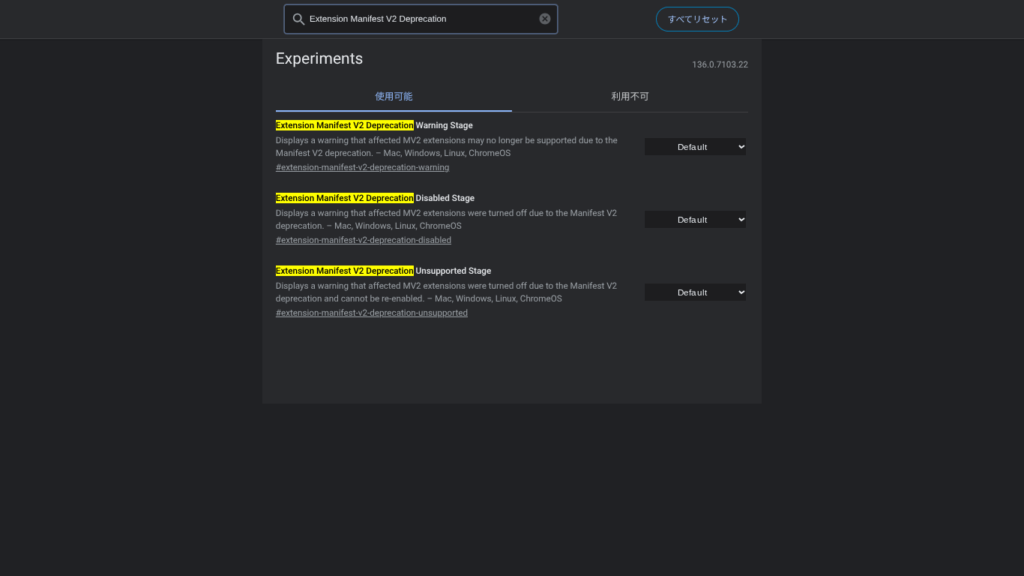 ・chrome://policyに、「ExtensionManifestV2Availability」という項目でその値が 2 になっている場合
