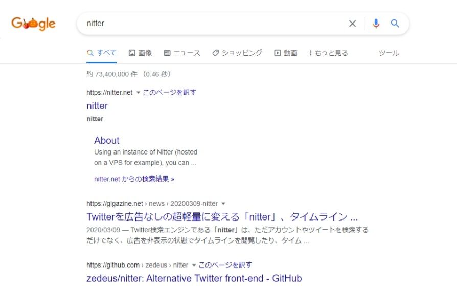 - まずは、Googleを開き、「nitter」と検索します。