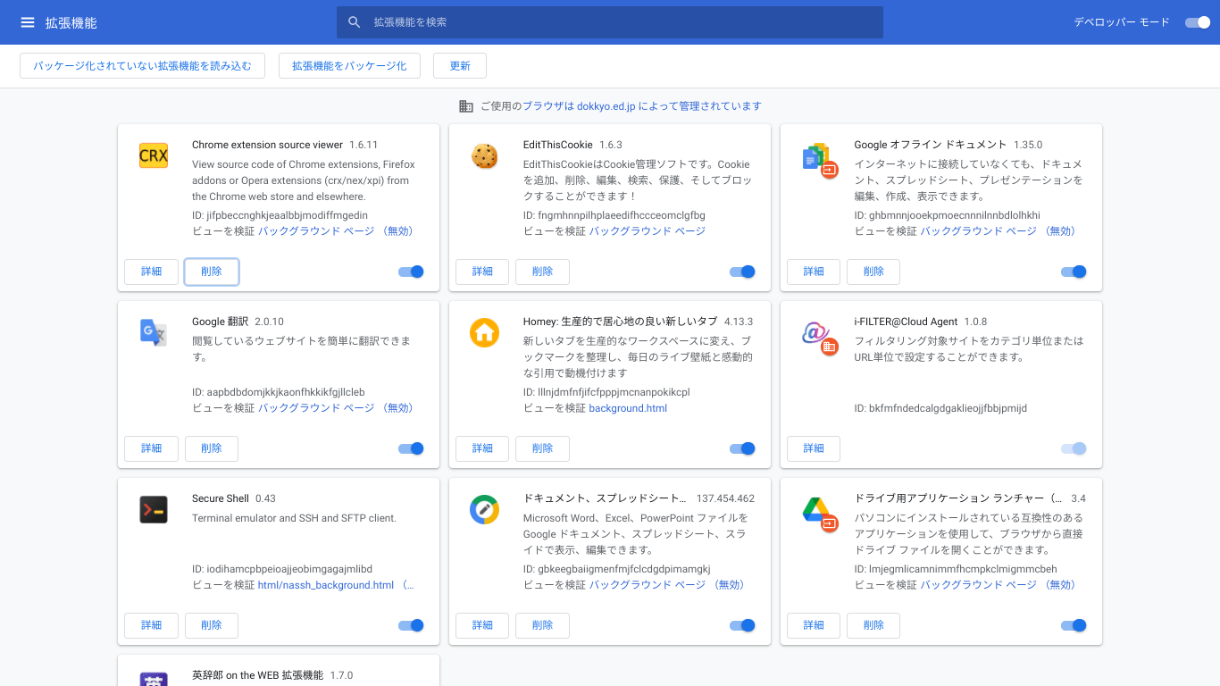 - そして、Google Chrome(ブラウザアプリケーション)の拡張機能 管理画面を開きます。