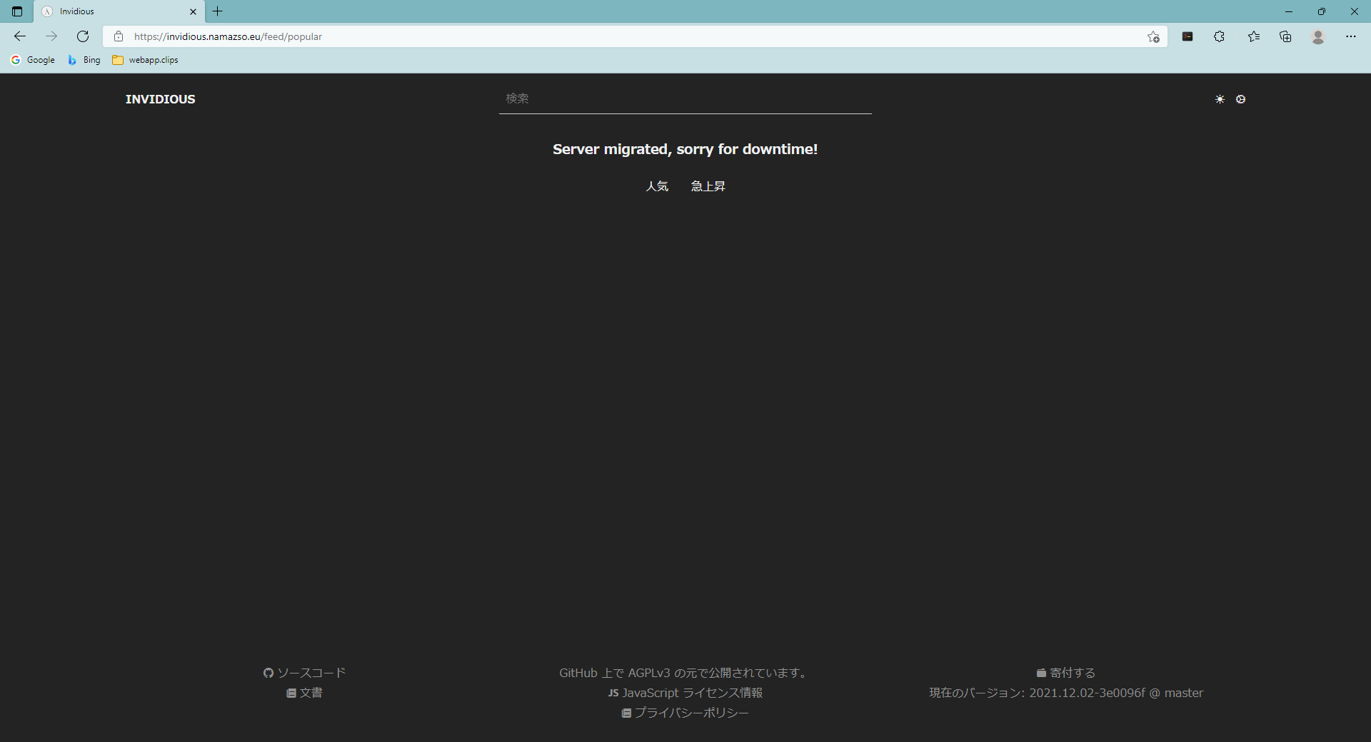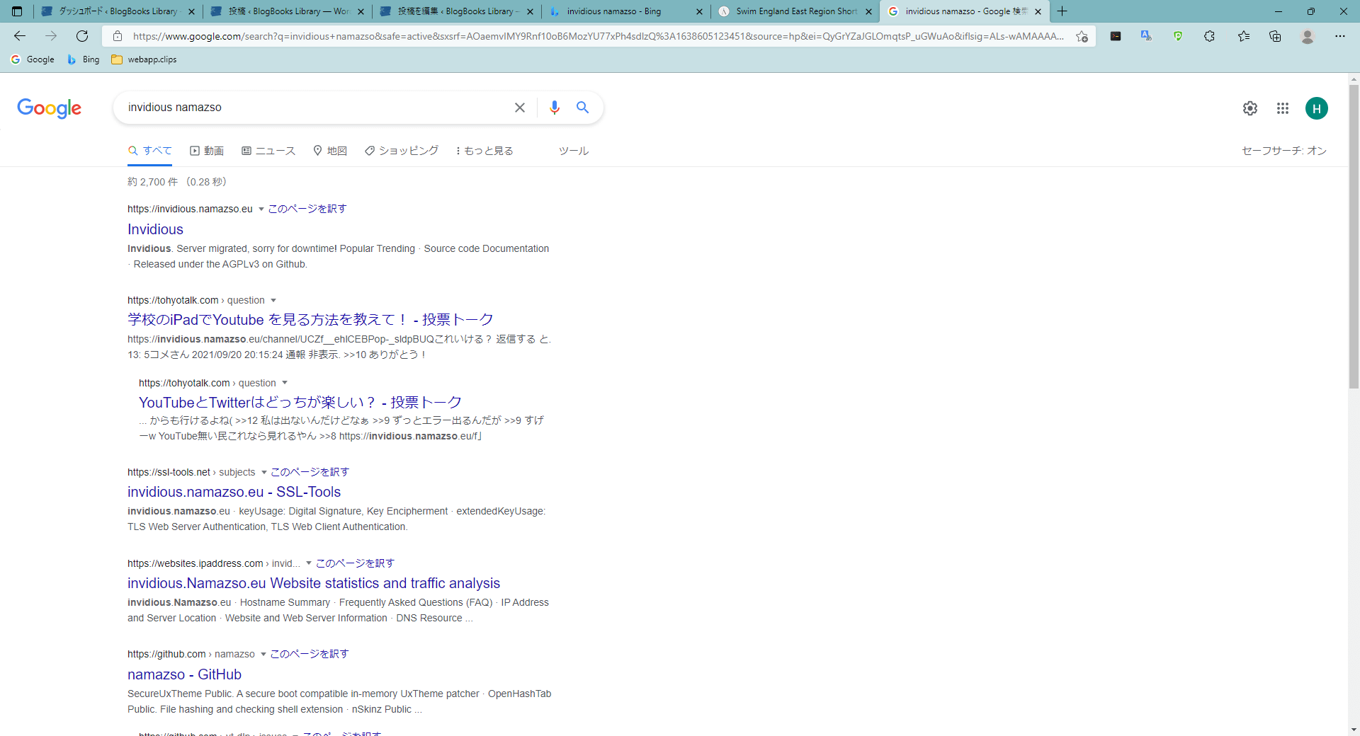 - まずは、Googleを開き、「invidious namazso」と検索します。